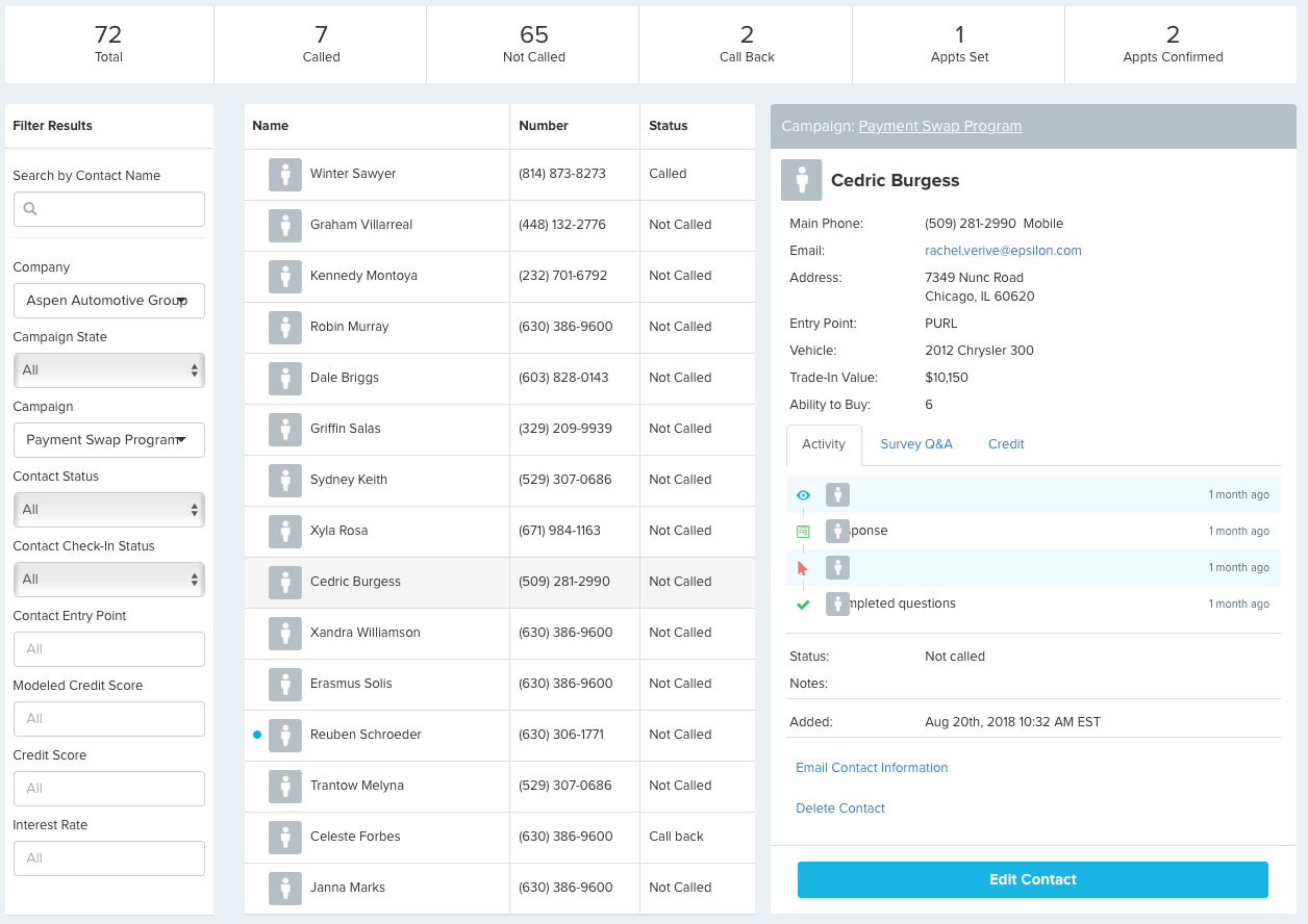 Local phone numbers are used for leads that prefer to call. This method includes survey questions to generate additional analytics and callers can be transferred to the dealership to speak with the sales team.