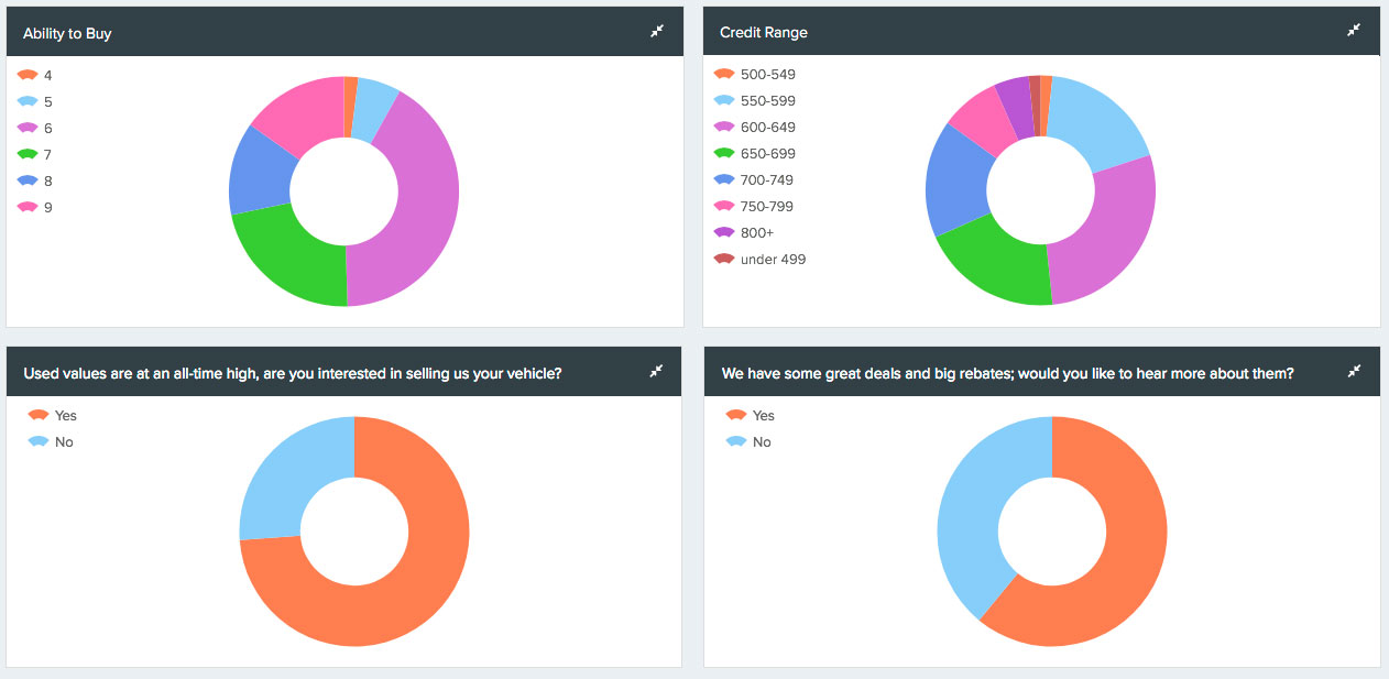 Personalized landing pages can be reached via the mailer and email message. This method includes survey questions to generate additional analytics and links responders to your dealership website.